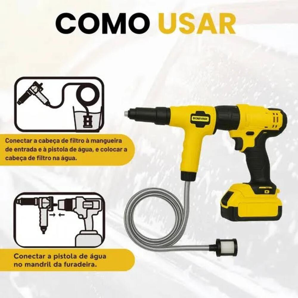 O Adaptador de Lavadora para Parafusadeira BOM-7976 Bomvink é a solução ideal para quem busca praticidade e economia na hora da limpeza. Compatível com parafusadeiras elétricas ou a bateria, ele permite utilizar a força do equipamento para gerar pressão de água, tornando a lavagem muito mais eficiente.