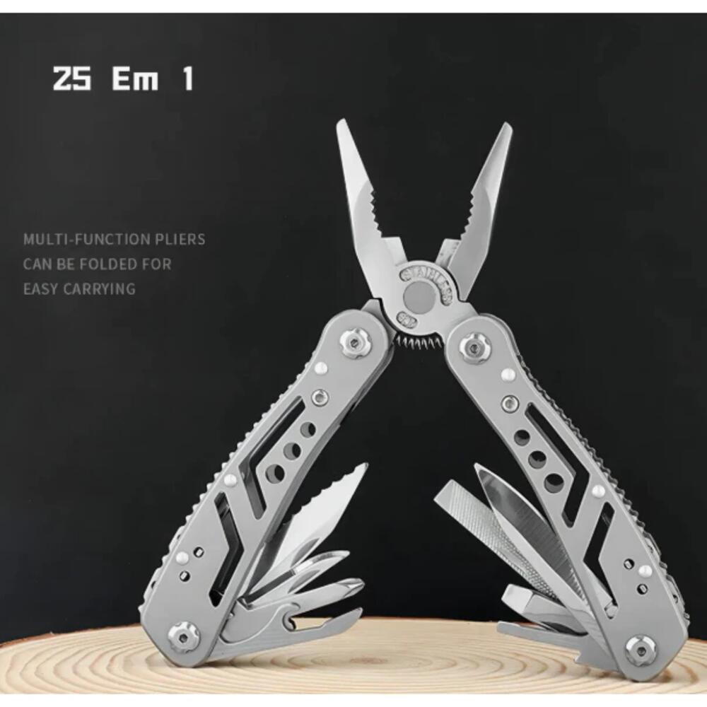 O Alicate Multifuncional Dobrável Bom-1516 é a ferramenta ideal para quem busca praticidade, versatilidade e eficiência em um único produto. Com 25 funções integradas, atende perfeitamente às necessidades de reparos rápidos, manutenções, atividades ao ar livre, camping, trilhas, pesca, sobrevivência e uso doméstico.