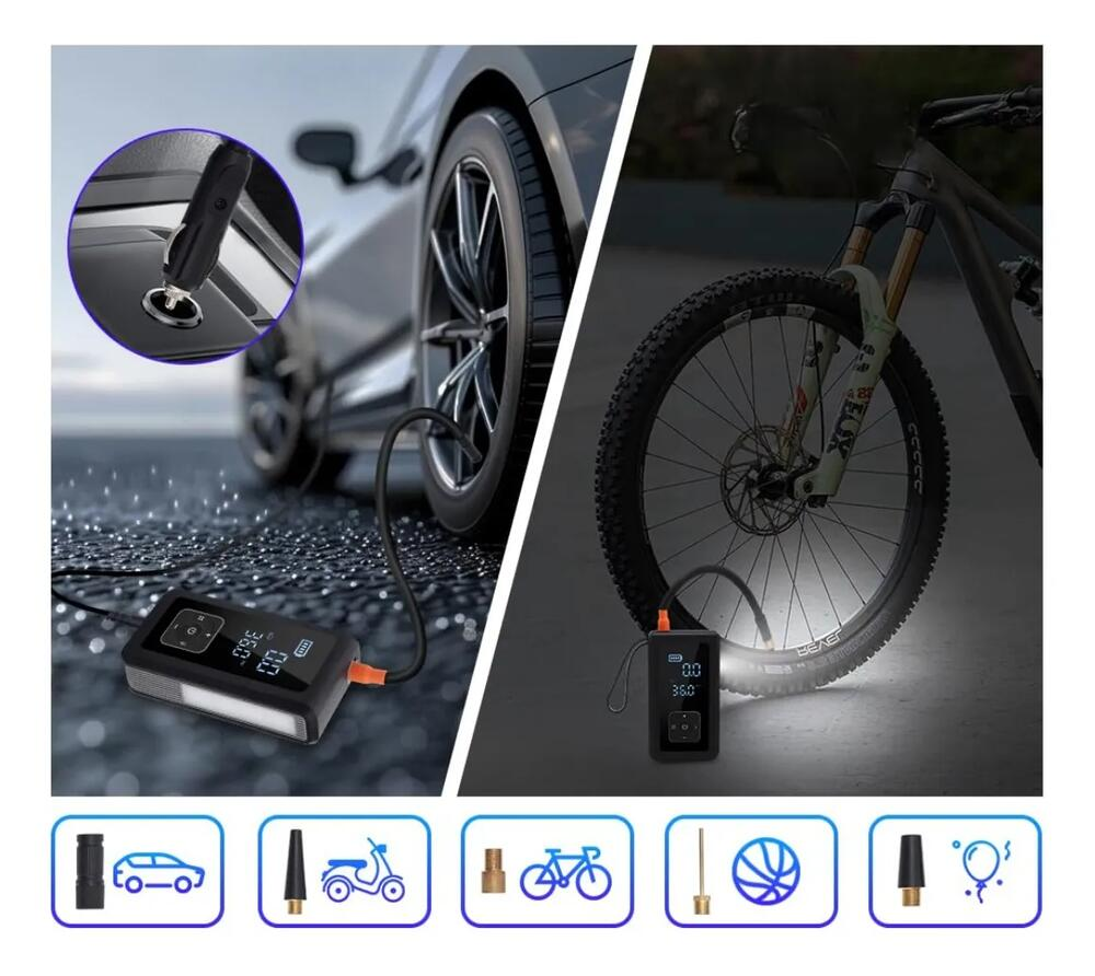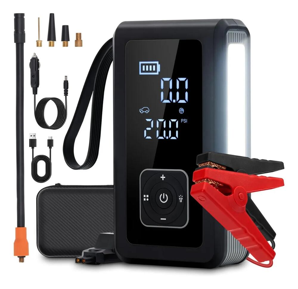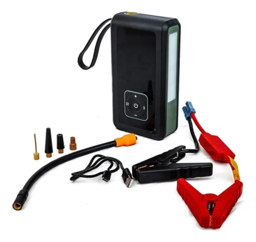 Com bateria de 10.000mAh, oferece energia suficiente para dar partida em carros e motos, além de permitir inflar pneus, bolas e bicicletas com eficiência. O display digital retroiluminado permite monitoramento preciso da pressão em PSI, BAR ou KPA, facilitando o uso em qualquer ambiente.