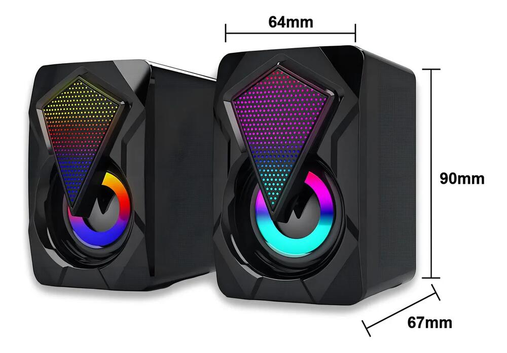 Possui conexão P2 (3,5mm) compatível com computadores, notebooks, TVs, monitores e outros dispositivos com saída de áudio auxiliar. Sua alimentação via USB 5V facilita a instalação, dispensando tomadas extras — basta conectar e usar (Plug & Play).