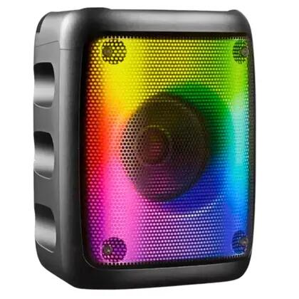 Seu visual conta com iluminação LED decorativa, criando um ambiente mais animado para festas, confraternizações e momentos de lazer. A bateria interna recarregável garante praticidade e liberdade para utilizar a caixa de som em ambientes internos e externos.
