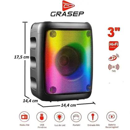 A Caixa de Som Portátil Grasep D-3139 combina qualidade sonora, mobilidade e design moderno. Com tecnologia Bluetooth, permite conexão rápida e estável com smartphones, tablets, notebooks e outros dispositivos compatíveis.