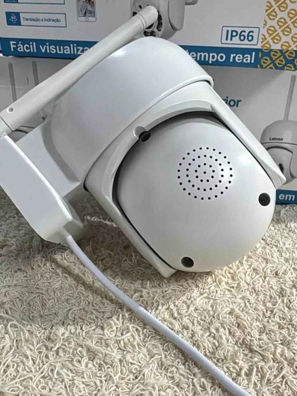 A câmera possui visão noturna infravermelha com alcance de até 10 metros, permitindo monitoramento mesmo em condições de baixa luminosidade. Equipado com detecção de movimento inteligente, envia alertas em tempo real para o seu celular, mantendo você informado sobre qualquer atividade suspeita.