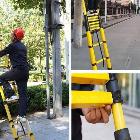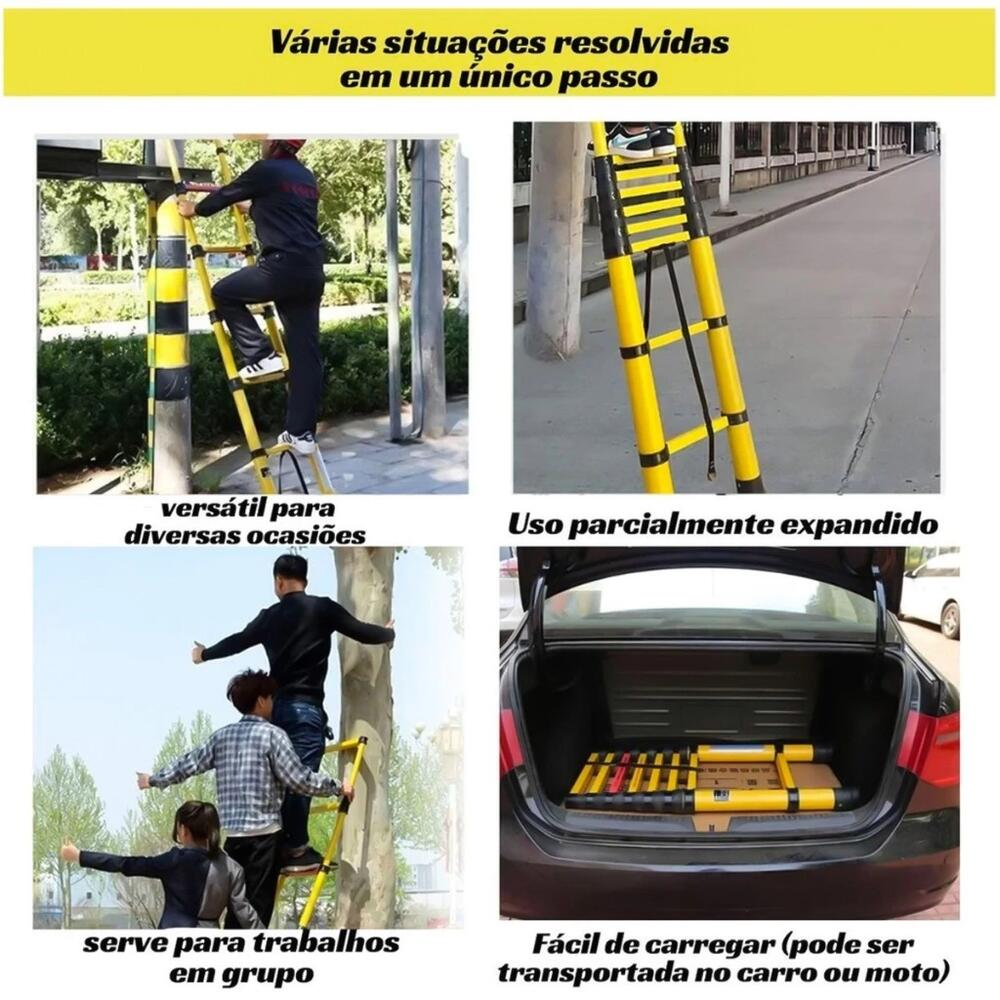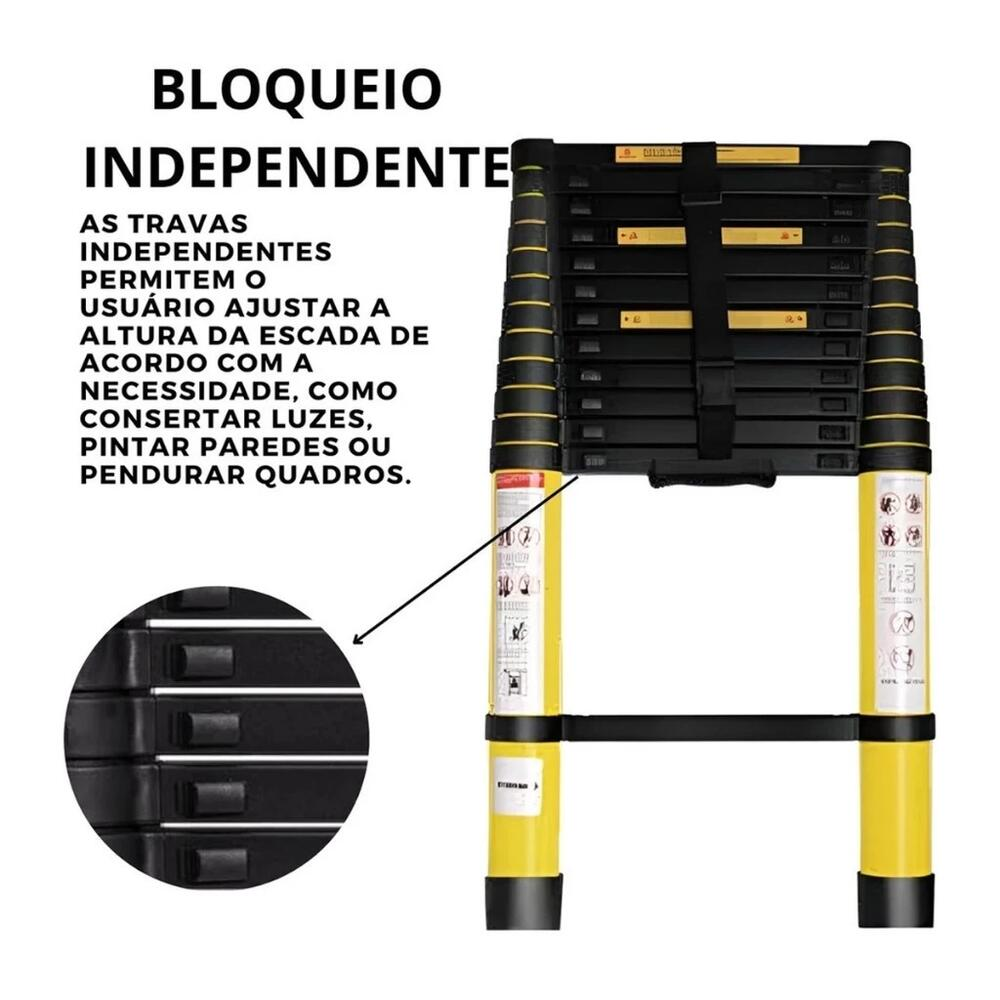 Possui estrutura telescópica articulada, permitindo diferentes posições de uso como escada reta, escada tipo “A” ou plataforma de apoio. Fabricada em material resistente, proporciona estabilidade durante o uso.