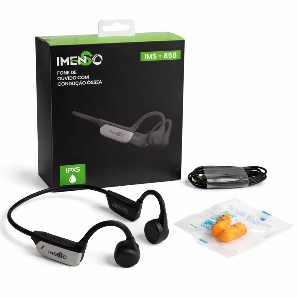 O Fone de Ouvido Imenso IMS-858 utiliza tecnologia de condução óssea (open-ear), permitindo ouvir música sem bloquear totalmente os ouvidos. Esse sistema transmite o som através das vibrações nos ossos da face, mantendo o canal auditivo livre.