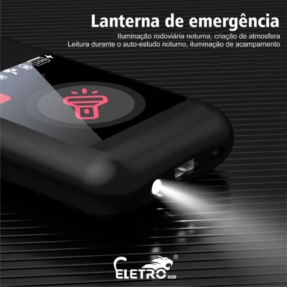 O grande diferencial do modelo é o estojo inteligente com bateria de 8000mAh, que além de recarregar os fones funciona como power bank para smartphones e outros dispositivos através de saída USB ou cabos integrados.