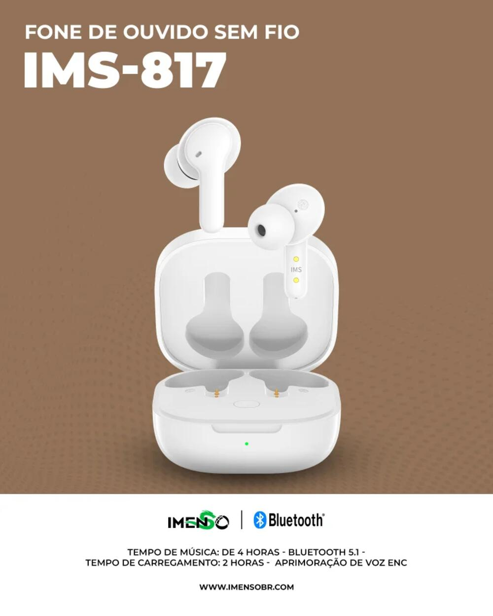 O Fone de Ouvido Bluetooth TWS Imenso IMS-817 foi desenvolvido para oferecer praticidade, qualidade sonora e liberdade sem fios no dia a dia.