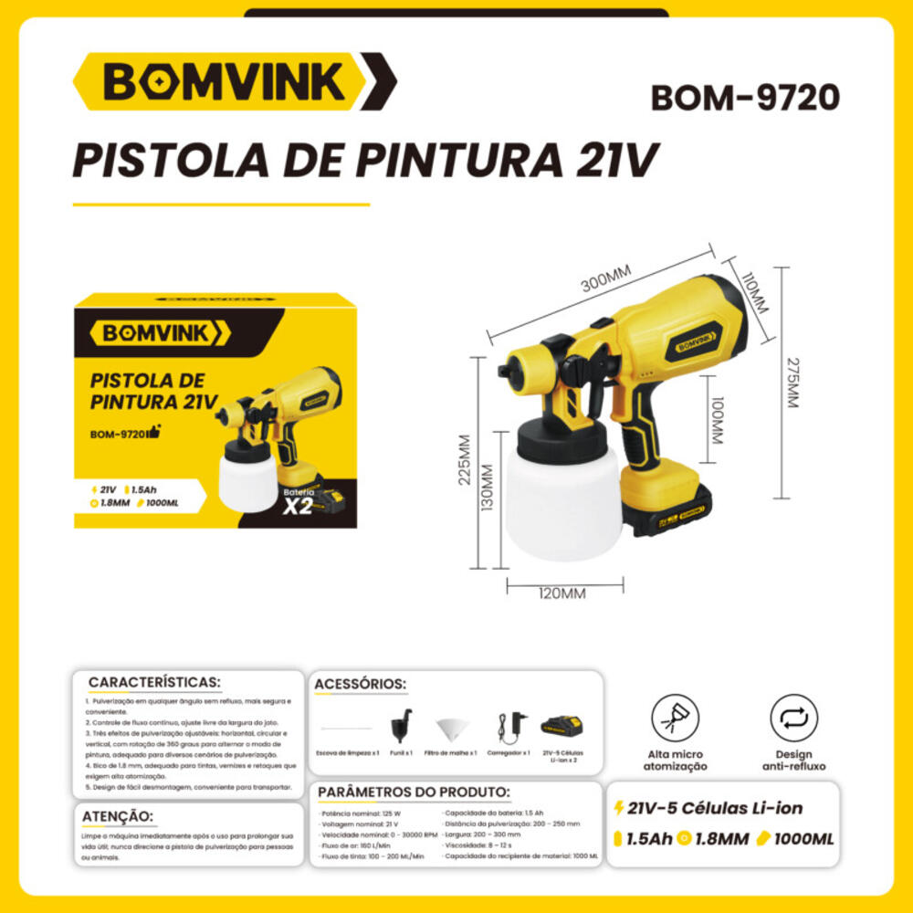 01 Pistola de pintura elétrica Bomvink BOM-9720