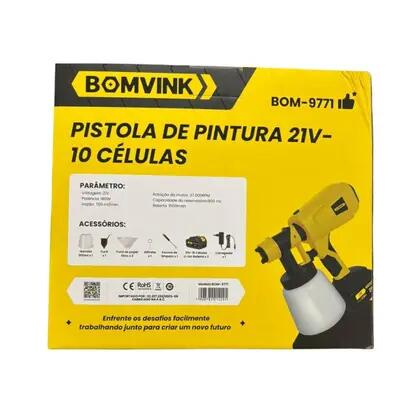 A Pistola de Pintura Elétrica Bomvink BOM-9771 é desenvolvida para aplicações de pintura em madeira, metal, paredes e diversas superfícies.