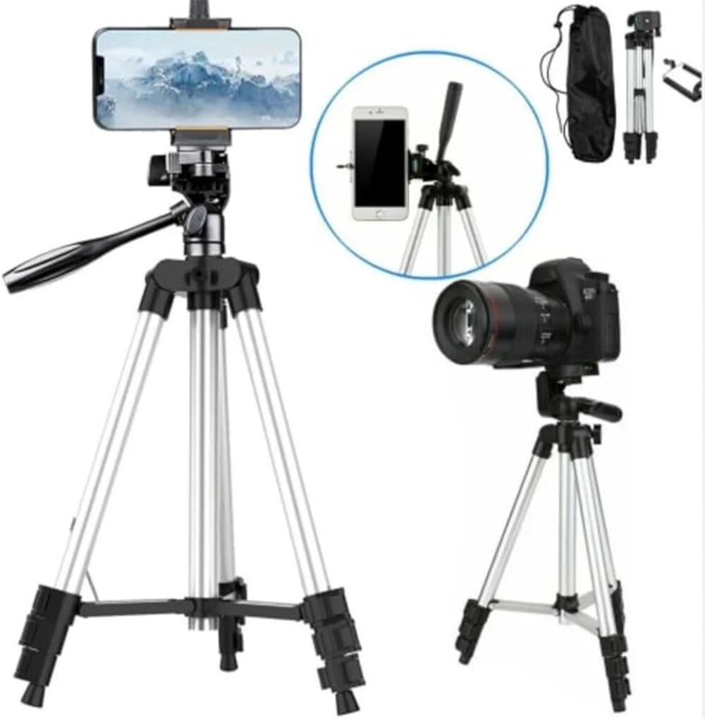 O Tripé Profissional Universal para Celular e Câmera 1,3m é ideal para fotos, vídeos, lives, chamadas de vídeo e gravações em geral. Fabricado em alumínio, é leve, resistente e fácil de transportar, acompanhando bolsa de transporte para maior praticidade.