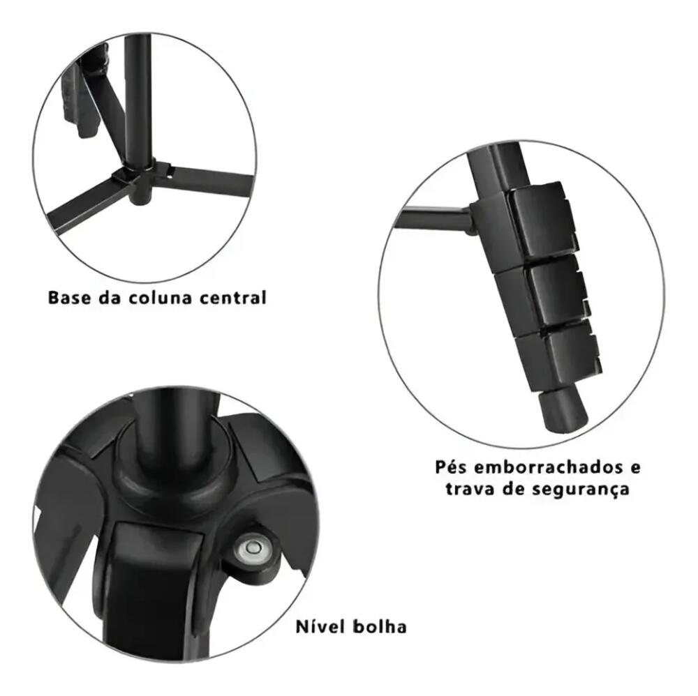 O Tripé Profissional para Celular e Câmera é ideal para quem busca estabilidade e praticidade em fotos, vídeos, lives e gravações profissionais. Possui estrutura resistente, cabeça articulada, nível de bolha para alinhamento preciso e acompanha suporte para celular e estojo para transporte.