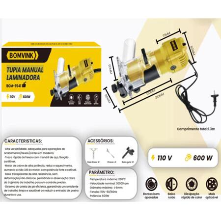 A Tupia Manual Laminadora Bomvink BOM-9541 foi desenvolvida para proporcionar precisão, controle e acabamento de qualidade em trabalhos de marcenaria e carpintaria. Indicada para rebaixos, cortes, chanfrados, acabamentos em bordas e trabalhos detalhados em madeira, MDF e materiais semelhantes.