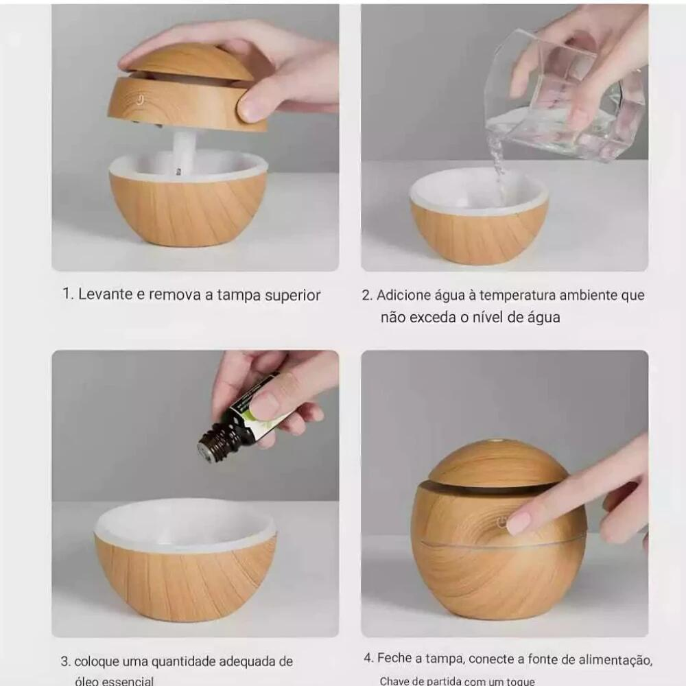 Pode ser utilizado com água ou essências aromáticas próprias para umidificadores, ajudando a aliviar o ressecamento do ar, reduzir desconfortos respiratórios e criar uma atmosfera mais agradável. Leve, silencioso e eficiente, é uma excelente escolha para uso diário ou como item decorativo funcional.