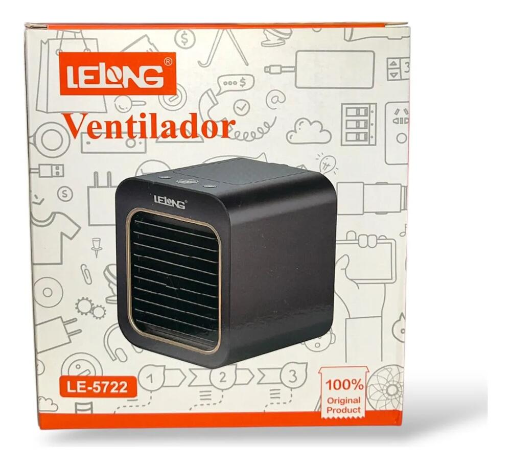 Ventilador elétrico de mesa Lelong modelo LE-5722, desenvolvido para uso doméstico, destinado à ventilação de ambientes internos. Possui hélices acionadas por motor elétrico, estrutura em material resistente, grades de proteção frontal e traseira para segurança do usuário, base estável para apoio sobre superfícies planas e controle de velocidades para ajuste do fluxo de ar. Equipamento alimentado por energia elétrica, indicado para conforto térmico em residências, escritórios e ambientes similares.