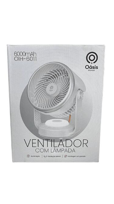 Ventilador elétrico mini, de uso pessoal, destinado à ventilação leve de ambientes internos, com lâmpada integrada para iluminação auxiliar. Desenvolvido para uso individual, ideal para mesas, bancadas ou apoio, não indicado para aplicações industriais ou profissionais.