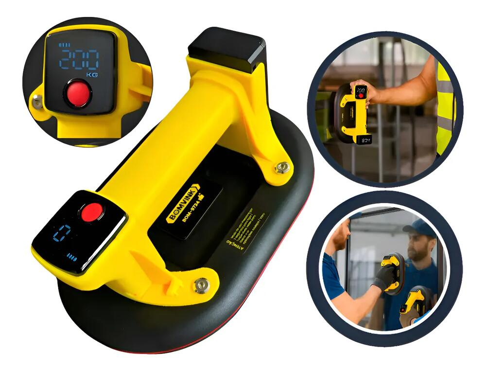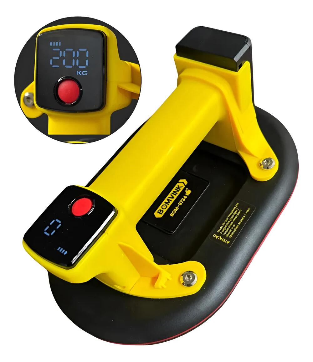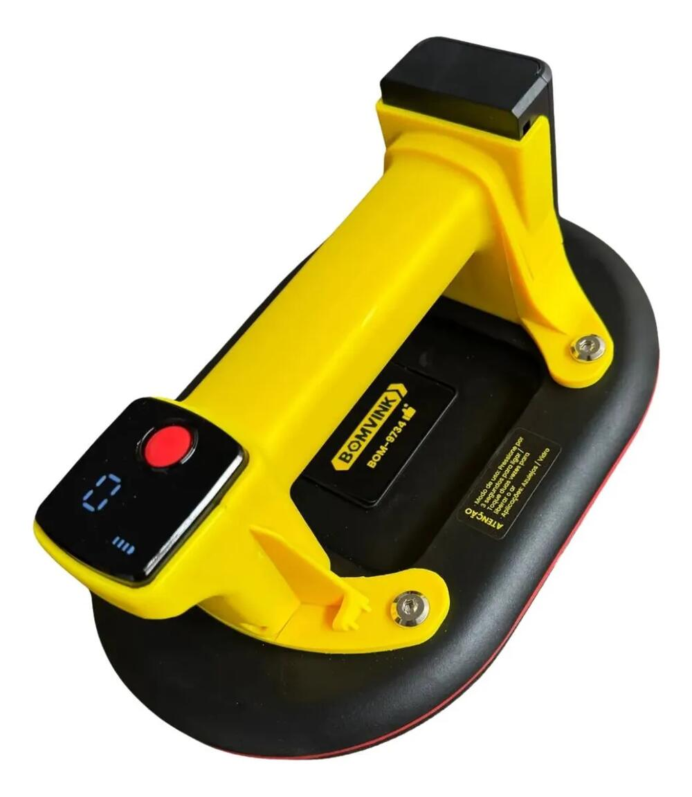 A Ventosa de Sucção com Bomba de Vácuo a Bateria Bomvink BOM-9734 é uma ferramenta profissional desenvolvida para elevação, transporte e instalação segura de porcelanatos grandes, vidros, granitos, mármores e superfícies lisas.