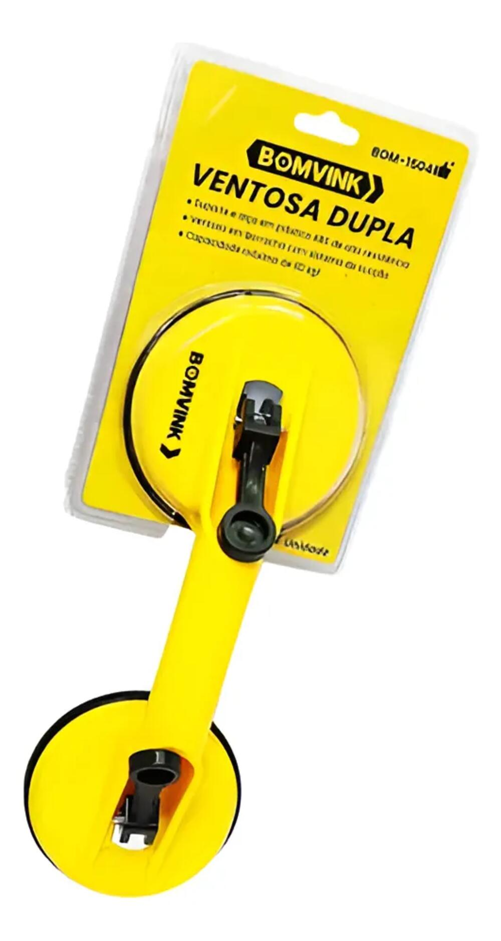 A Ventosa Dupla Bomvink BOM-1504 foi desenvolvida para facilitar o manuseio, levantamento e transporte de materiais com superfícies lisas, como vidros, espelhos, porcelanatos, azulejos, chapas metálicas e outros materiais planos.