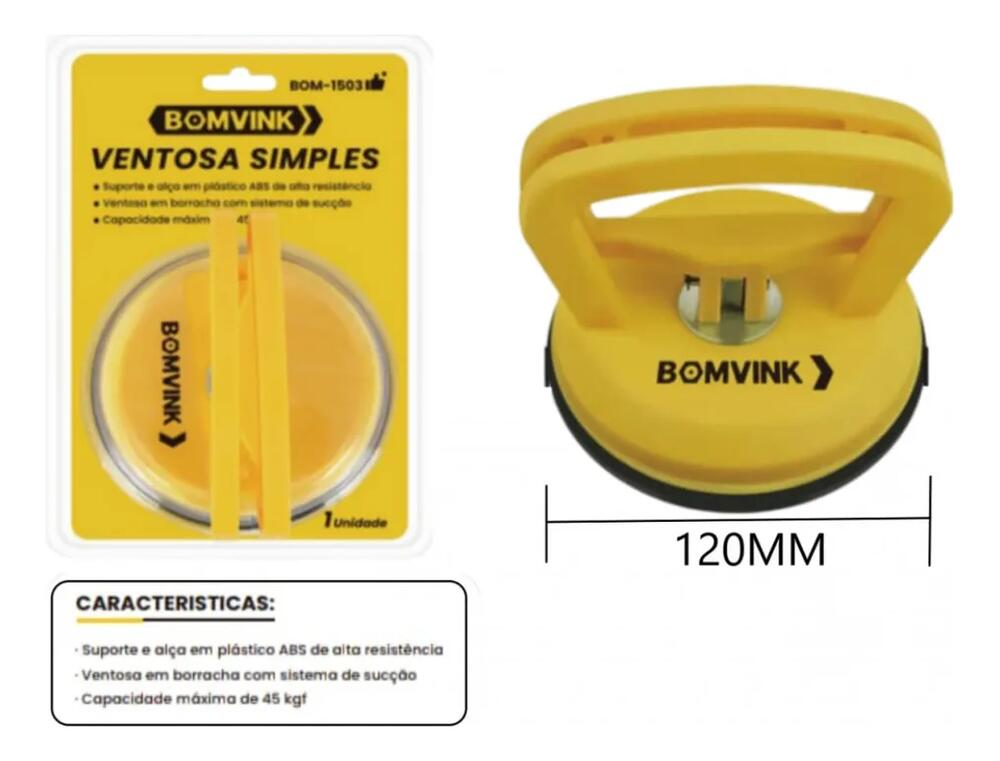A Ventosa Simples Bomvink BOM-1503 é uma ferramenta prática e eficiente para elevação, movimentação e posicionamento de vidros, porcelanatos, cerâmicas e superfícies lisas.